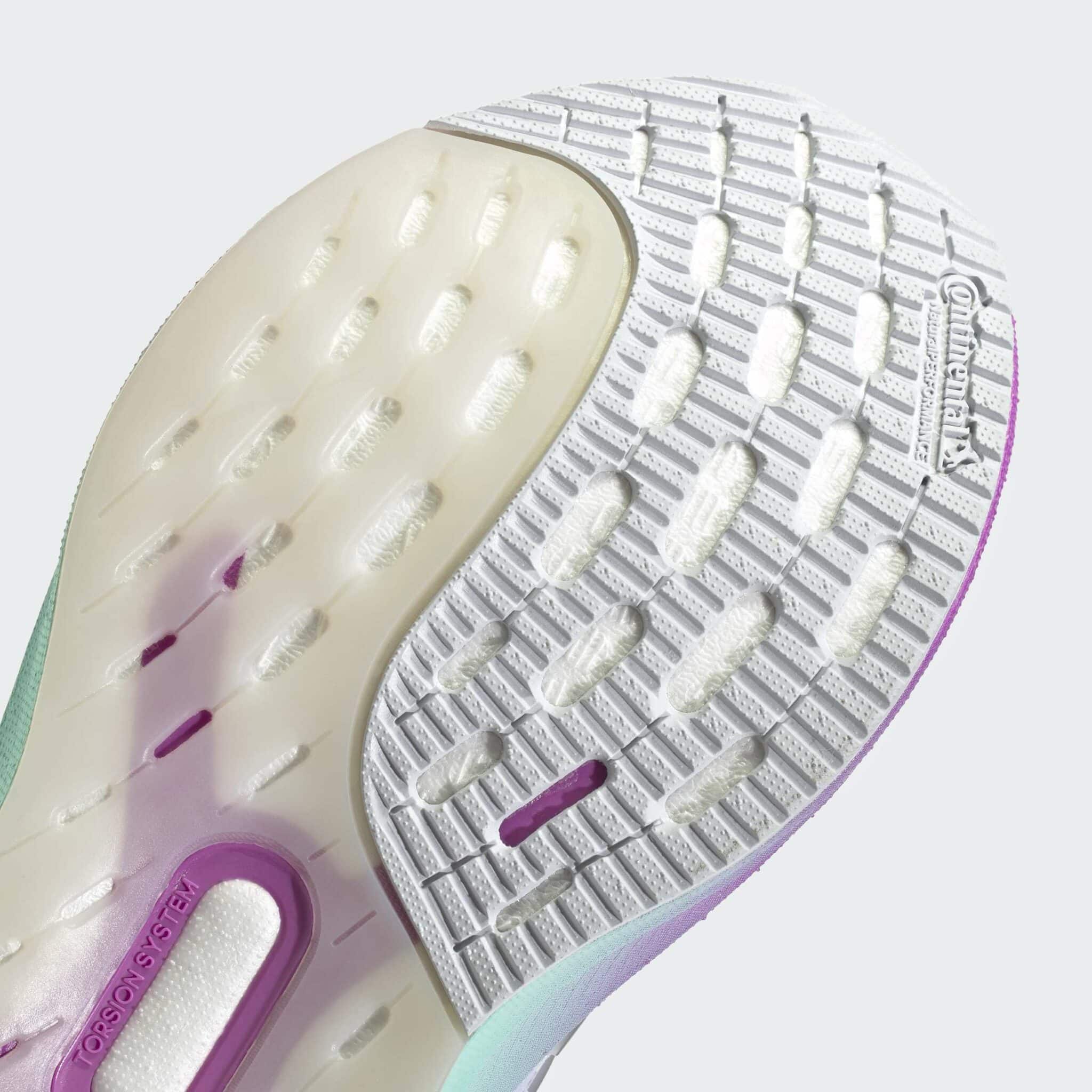 From track runs to errand runs, experience a spring in your step with these Ultraboost running shoes from adidas. Made with our lightest BOOST cushioning ever, they give back energy with every stride. Combined with the Torsion System for heel-to-toe stability, they deliver a smooth, comfortable ride you have to feel to believe. This product features at least 20% recycled materials. By reusing materials that have already been created, we help to reduce waste and our reliance on finite resources and reduce the footprint of the products we make.