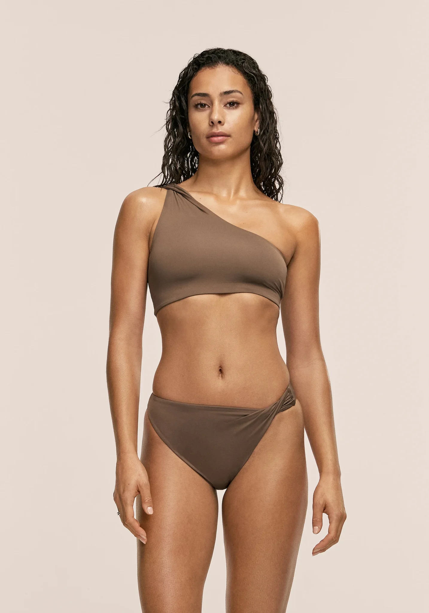 Fully lined high-waisted bikini bottoms with a twisted detail on one leg. Made from ECONYL®, a regenerated polyamide crafted from discarded fishing nets and other nylon waste. Offers UV protection 50+.
