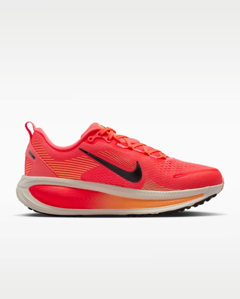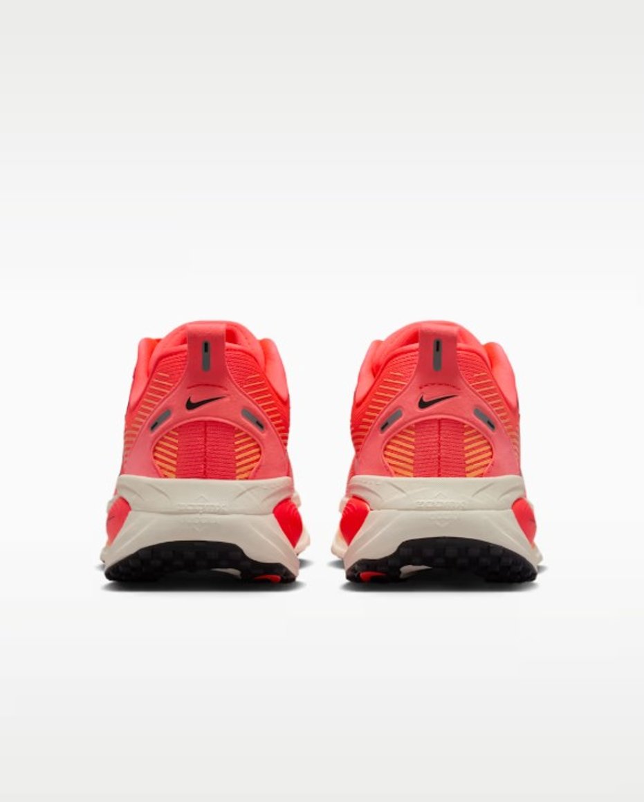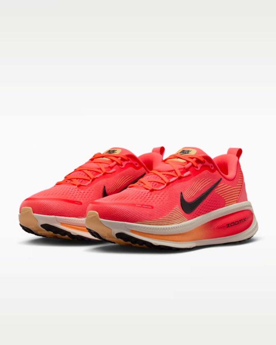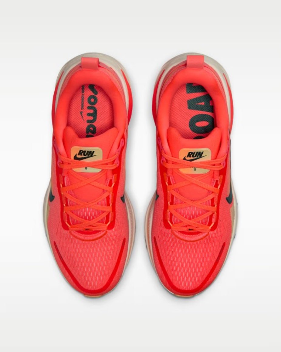 Hámarksdempun í Vomero veitir einstaklega þægilega hlaupaupplifun fyrir dagleg hlaup. Mjúkasta og best dempaða útgáfan hingað til sameinar létta ZoomX froðu ofan á ReactX froðu í millisólanum og skapar þannig mjúka, stöðuga og lipra tilfinningu í hverju skrefi. Endurhannað gripmynstur stuðlar að jafnari og mýkri færslu frá hæl að tá. Hannaður netefnisyfirhluti tryggir mjúka öndun, á meðan tvöfaldur millisóli með ZoomX og ReactX froðu eykur þægindi í hlaupum. Podar á ytri sólanum bæta lipurð og stuðla að fljótandi yfirfærslu í skrefinu, og mjúk tunga og fóður veita þægilega, aðsniðna tilfinningu. Ný staflun froðunnar, með úrvals ZoomX ofan á ReactX, eykur dempun og þægindi enn frekar.